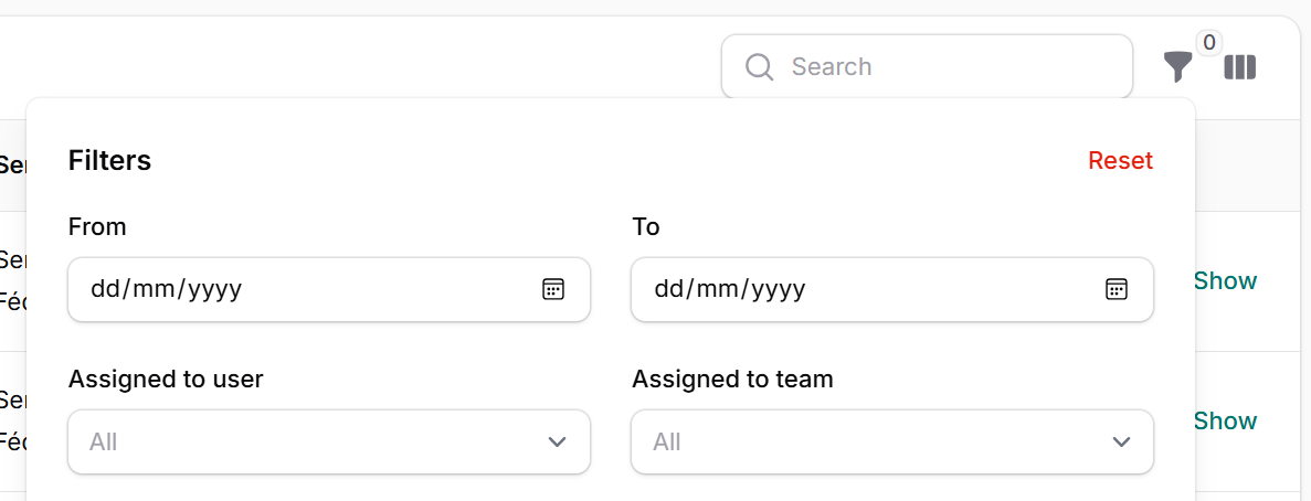 You can now filter messages on assigned user and assigned team through the Filters button in the Messages overview.